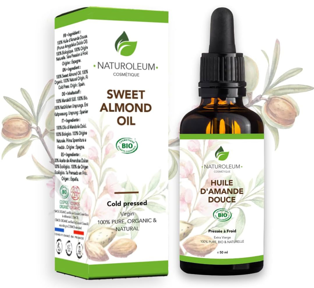 - Huile d’amande douce : légère, très bien tolérée, idéale pour les peaux sèches à normales. Elle nourrit sans graisser et constitue une excellente base pour tout massage du buste.